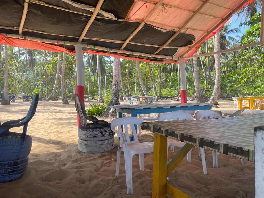 Relax before or after your meal on our beach chairs and soak in the stunning view of Playa Cosón's palm-lined shores in the Samaná Peninsula, Dominican Republic.