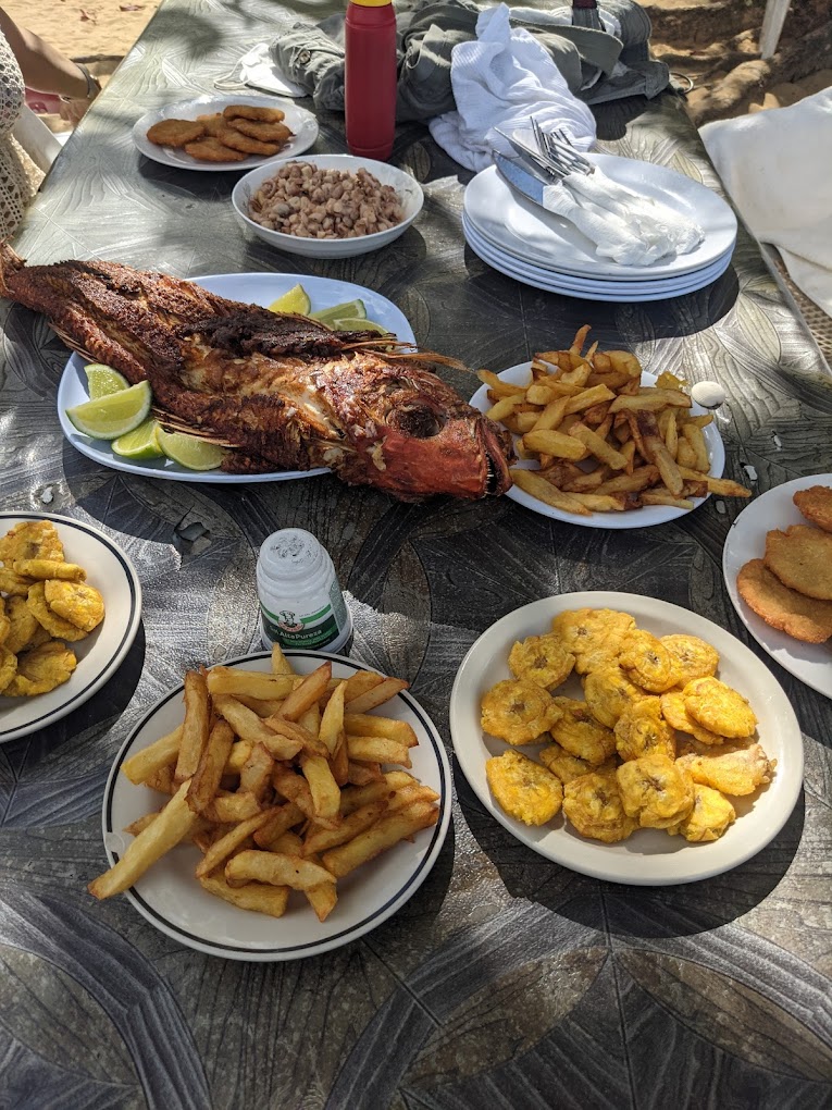 SERVICES OFFERED BY RESTAURANTE LUIS: Indulge in typical Dominican cuisine, with highlights including rice and beans, fresh fish caught daily, and a variety of chicken dishes. Save room for dessert with tropical fruits or cocktails like piña colada and caipirinha.